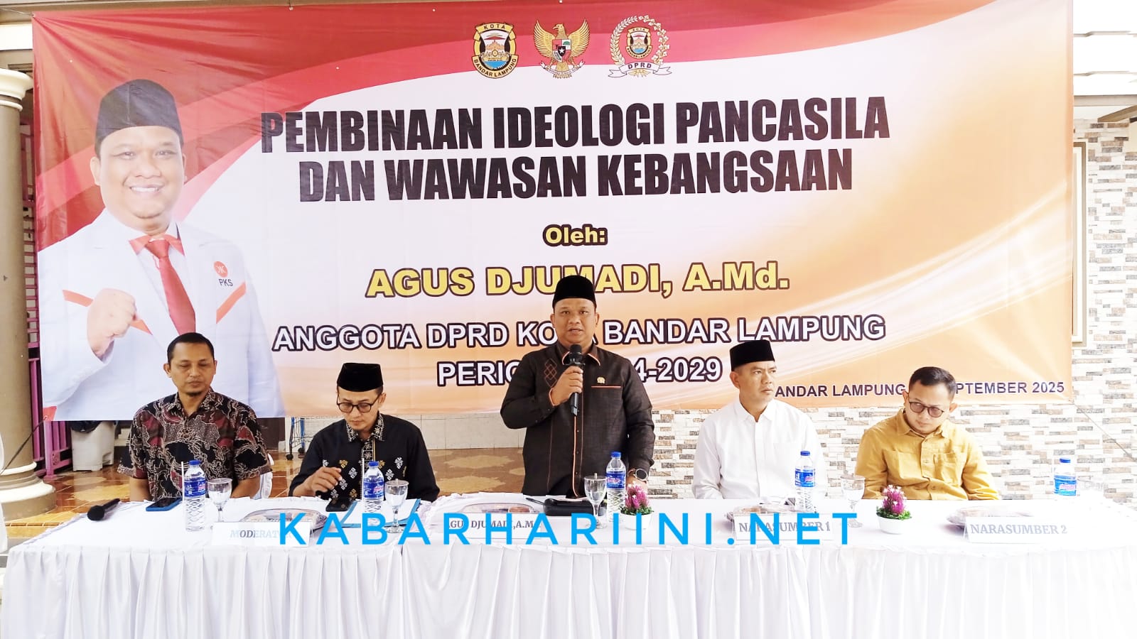 Bandarlampung – Anggota DPRD Bandarlampung Agus Djumadi melaksanakan kegiatan pembinaan ideologi pancasila dan wawasan kebangsaan di wilayah Jalan Palapa 10, Langkapura, Selasa (30/9/2025).