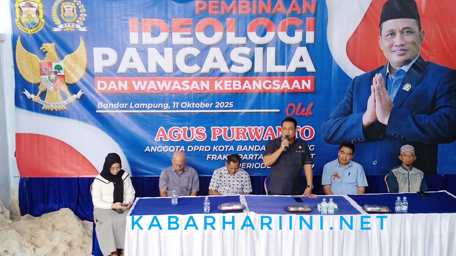 Bandarlampung – Anggota DPRD Bandarlampung Agus Purwanto mengadakan kegiatan pembinaan ideologi pancasila dan wawasan kebangsaan di wilayah Kedaung, Kemiling, Sabtu (11/10/2025).