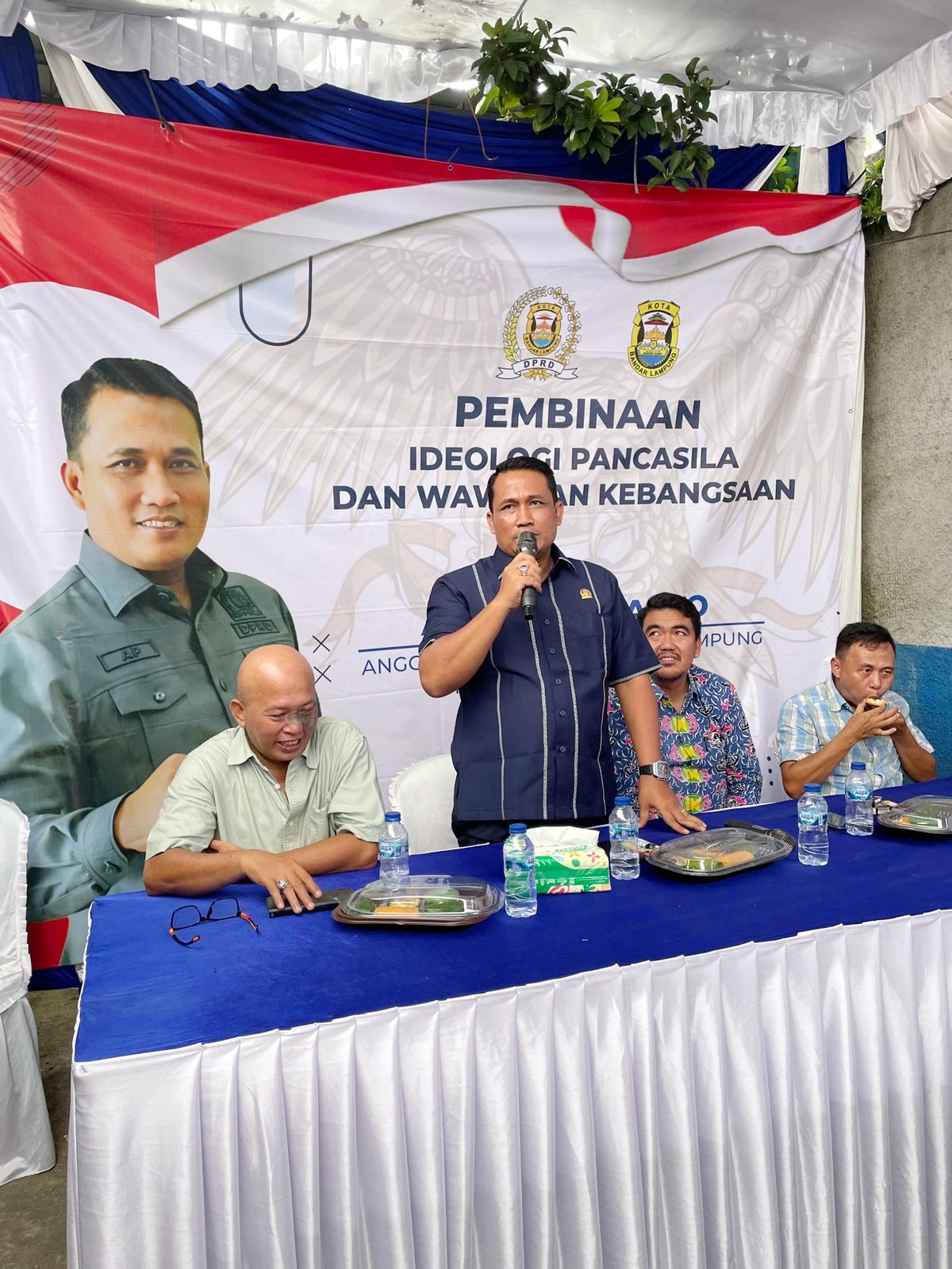 Bandarlampung – Anggota DPRD Bandarlampung Agus Purwanto mengadakan kegiatan pembinaan ideologi pancasila dan wawasan kebangsaan di wilayah Sumber Rejo Sejahtera, Minggu (19/10/2025).