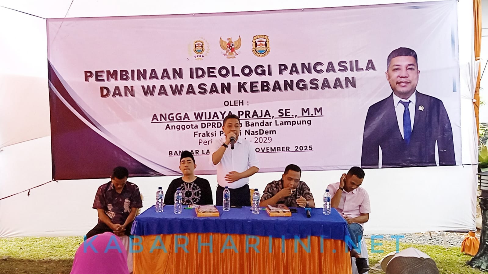 Bandarlampung – Anggota DPRD Bandarlampung Angga Wijaya Praja mengadakan kegiatan pembinaan ideologi pancasila dan wawasan kebangsaan di wilayah Pengajaran, Sabtu (8/11/2025).