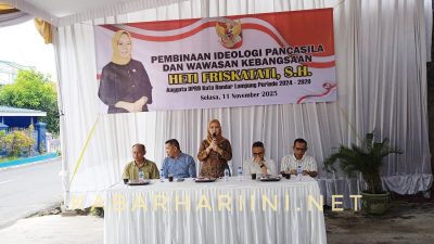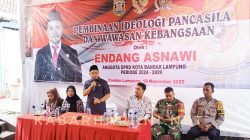 Bandarlampung – Ketua DPRD Bandarlampung Bernas Yuniarta mengadakan kegiatan pembinaan ideologi pancasila dan wawasan kebangsaan di wilayah Jalan P. Morotai, Kelurahan Jagabaya 3, Senin (10/11/2025).