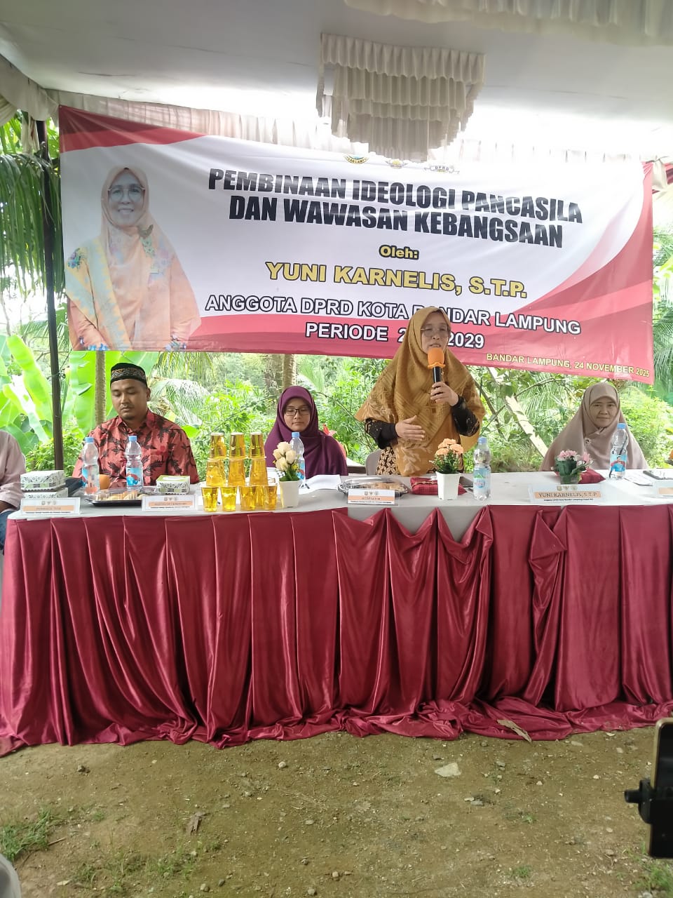 Bandarlampung – Anggota DPRD Bandarlampung Yuni Karnelis mengadakan kegiatan pembinaan ideologi pancasila dan wawasan kebangsaan di wilayah Batu Putu, Kecamatan Telukbetung Barat, Minggu (23/11/2025).