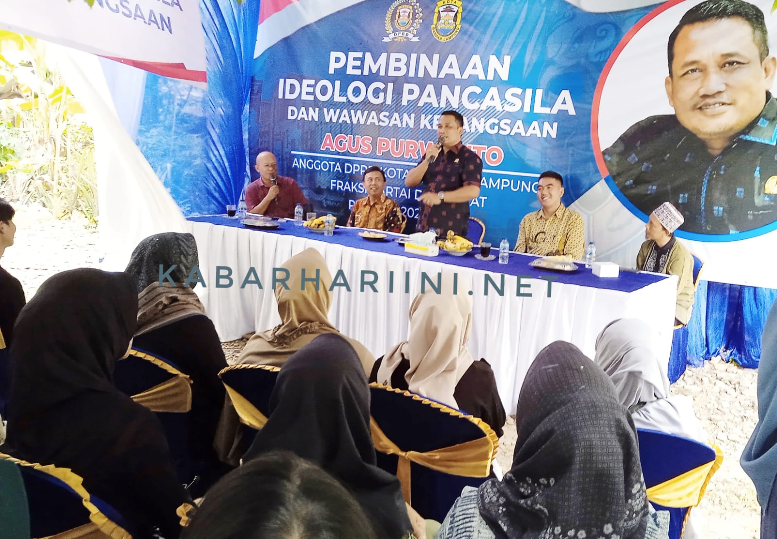 Bandarlampung – Anggota DPRD Bandarlampung Agus Purwanto mengadakan kegiatan pembinaan ideologi pancasila dan wawasan kebangsaan di wilayah Beringin Jaya, Kecamatan Kemiling, Rabu (26/11/2025).