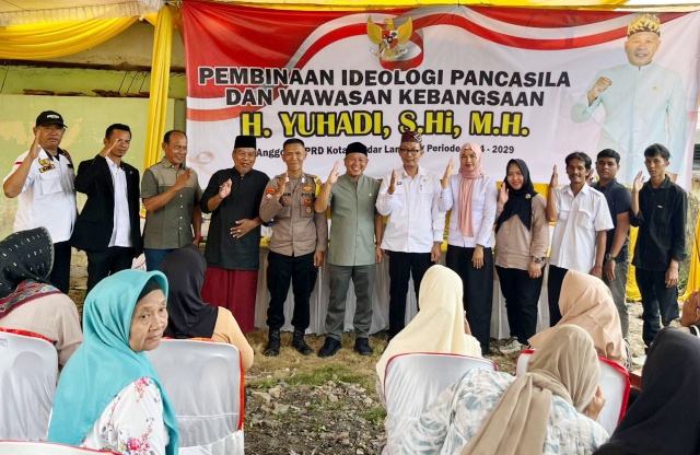 Bandarlampung – Anggota DPRD Bandarlampung Yuhadi melaksanakan sosialisasi pembinaan Ideologi pancasila dan wawasan kebangsaan di Kelurahan Durian Payung, Kecamatan Tanjungkarang Pusat, Rabu (26/11/2025).