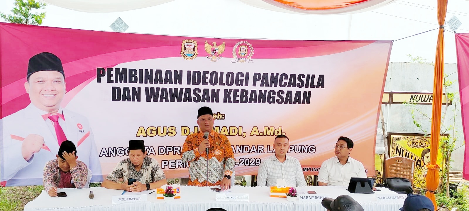 Hal tersebut disampaikan anggota DPRD Bandarlampung Agus Djumadi di dalam kegiatan pembinaan ideologi pancasila dan wawasan kebangsaan yang dilaksanakan di wilayah Gunung Terang, Kecamatan Langkapura, Jumat (20/2/2026).