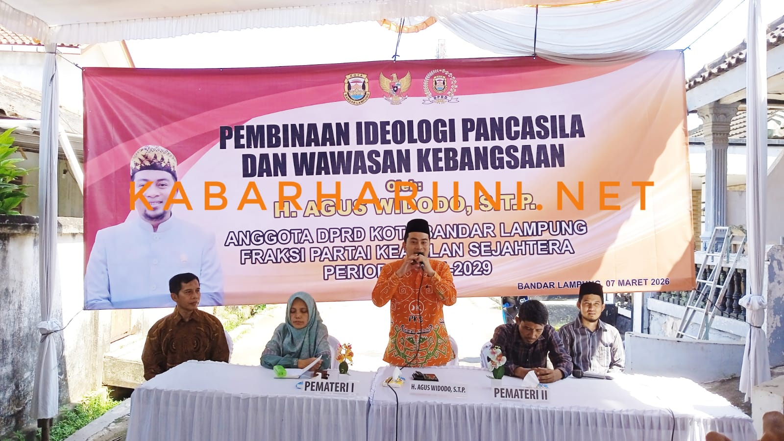 Hal tersebut disampaikan Anggota DPRD Bandarlampung Agus Widodo, di dalam kegiatan pembinaan ideologi pancasila dan wawasan kebangsaan yang dilaksanakan di wilayah Jalan Selat Malaka 2, Panjang, Sabtu (7/3/2026).